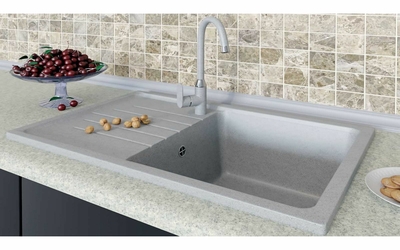 Мойка из нержавейки, мойка из искуственного камня, смеситель, фартук,